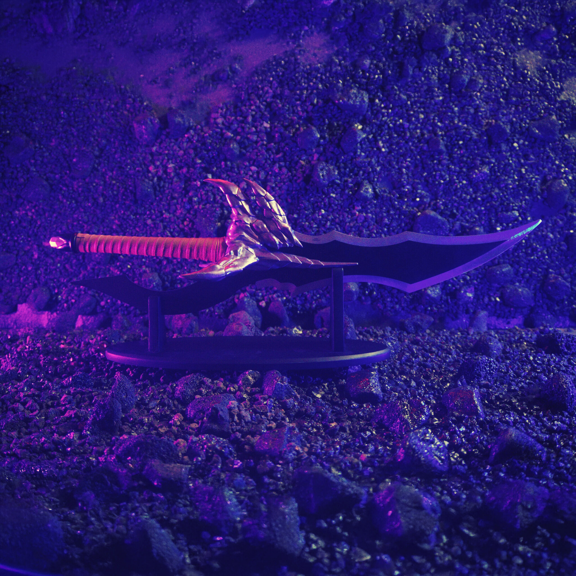 This metal replica is inspired by the visuals from the Solo Leveling manhwa, featuring a sharp, fang-like blade with venomous, snake-inspired aesthetics.