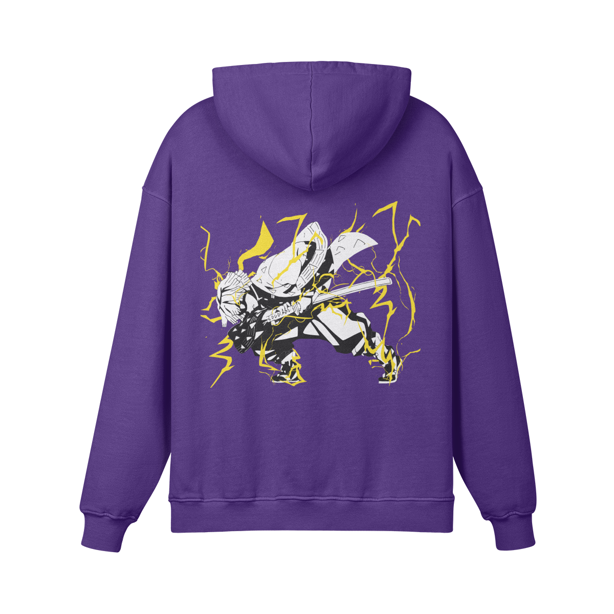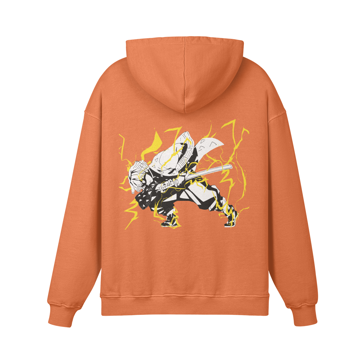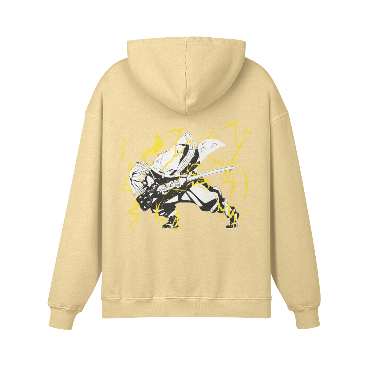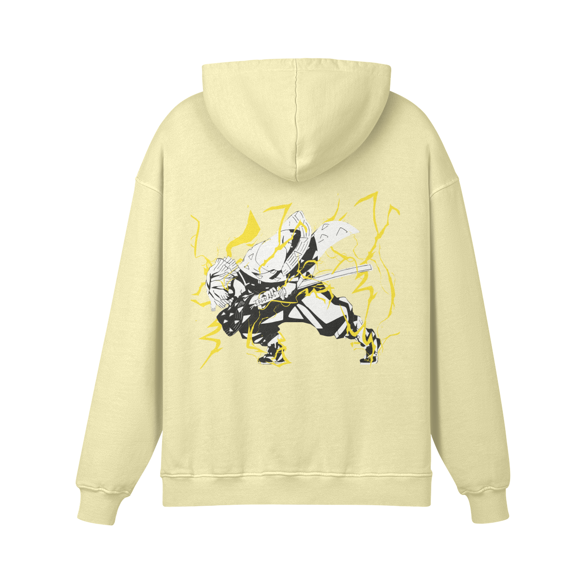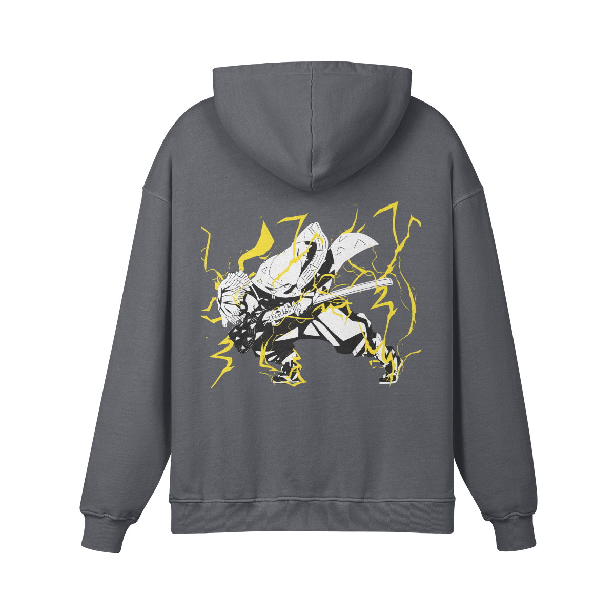 Thunderclap and Flash is Zenitsu’s defining moment—transforming fear into unstoppable speed. Featuring it front and center turns the hoodie into a symbol of hidden strength, growth, and explosive potential—exactly what Zenitsu embodies.